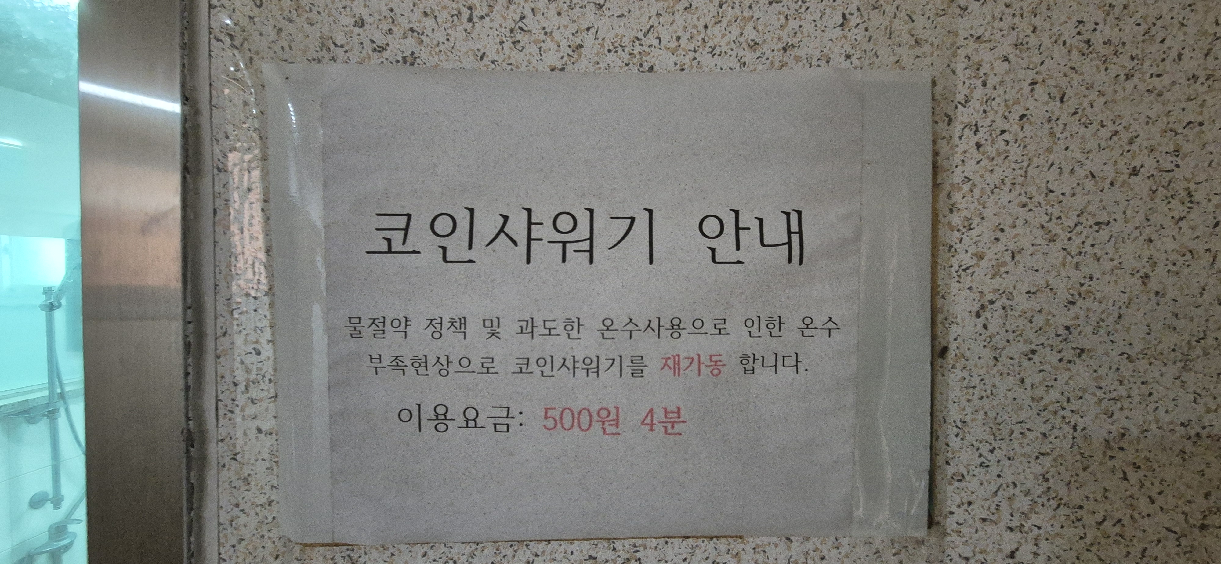 샤워장 입구 동전교환기